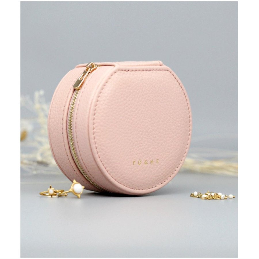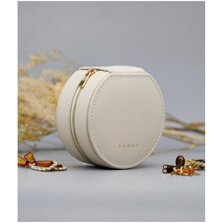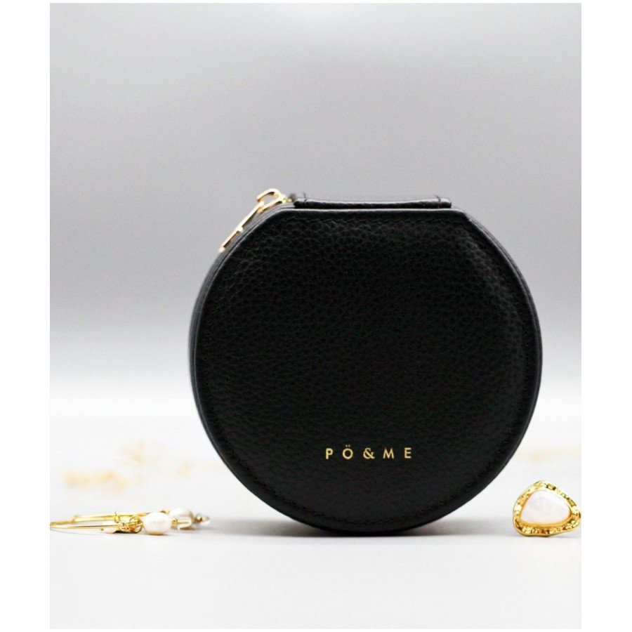 Boîte à Bijoux Trèfle - Grainé Petite boîte bijou à bijoux, secrets, trésors, à la forme ronde avec fermeture zippée, toute de cuir au toucher moelleux.