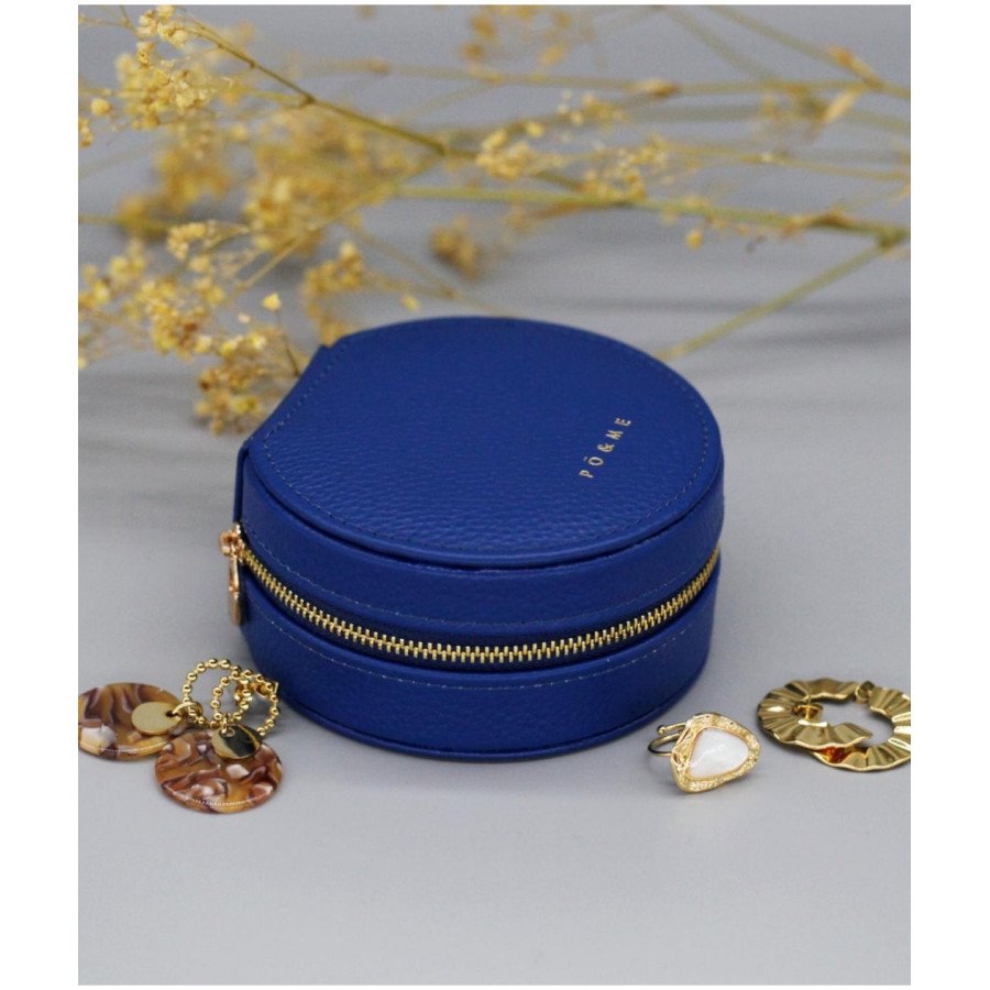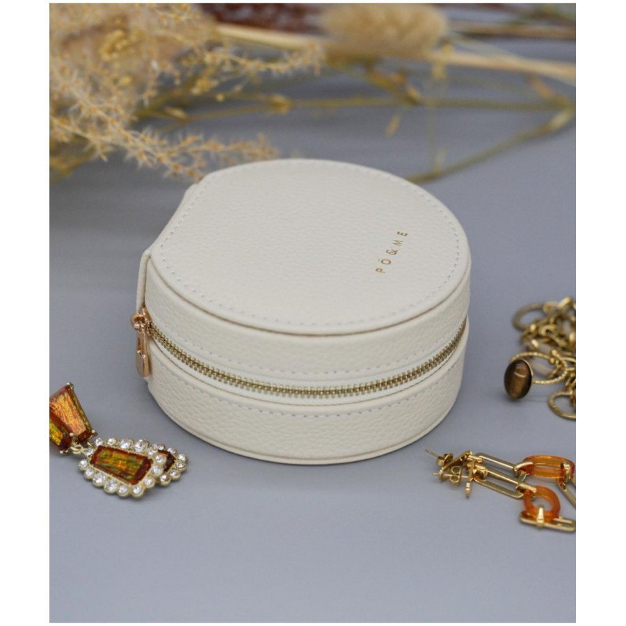 Boîte à Bijoux Trèfle - Grainé Petite boîte bijou à bijoux, secrets, trésors, à la forme ronde avec fermeture zippée, toute de cuir au toucher moelleux.